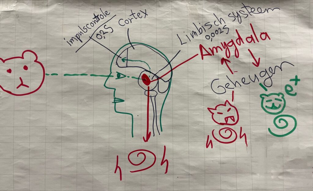 Belangrijk: de emotie komt vóór de gedachte. Veel angst en stress is aangeleerd op basis van eerdere ervaringen die in het emotiegeheugen zijn opgeslagen.